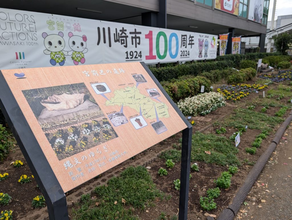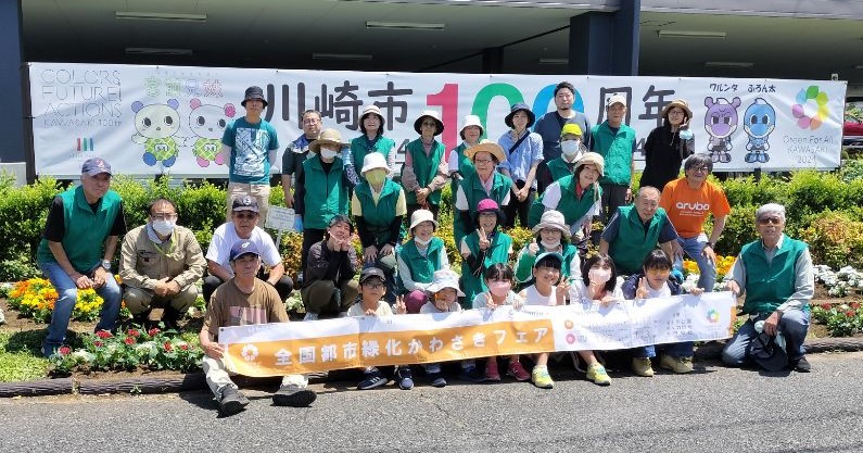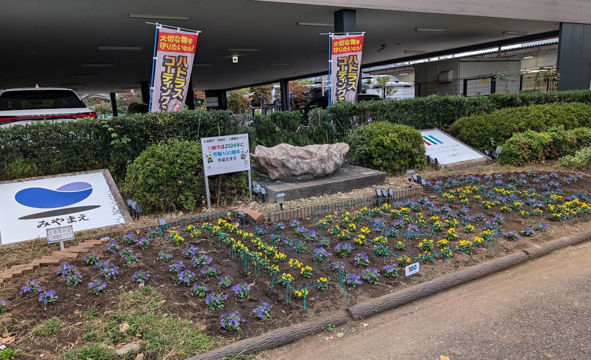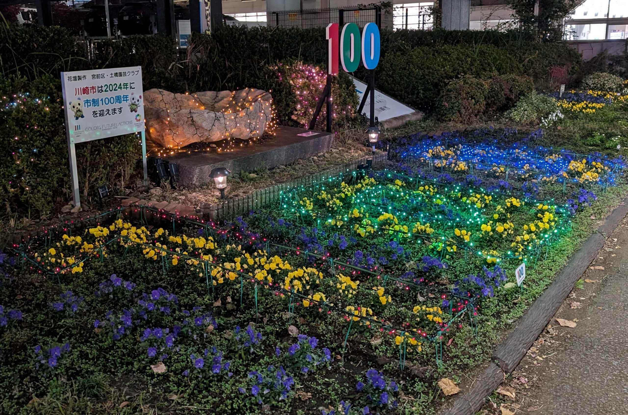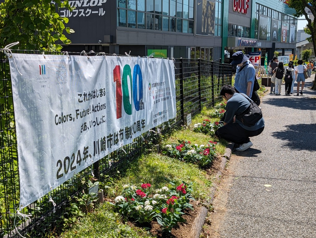 川崎市制100周年の花文字を植え付けました。