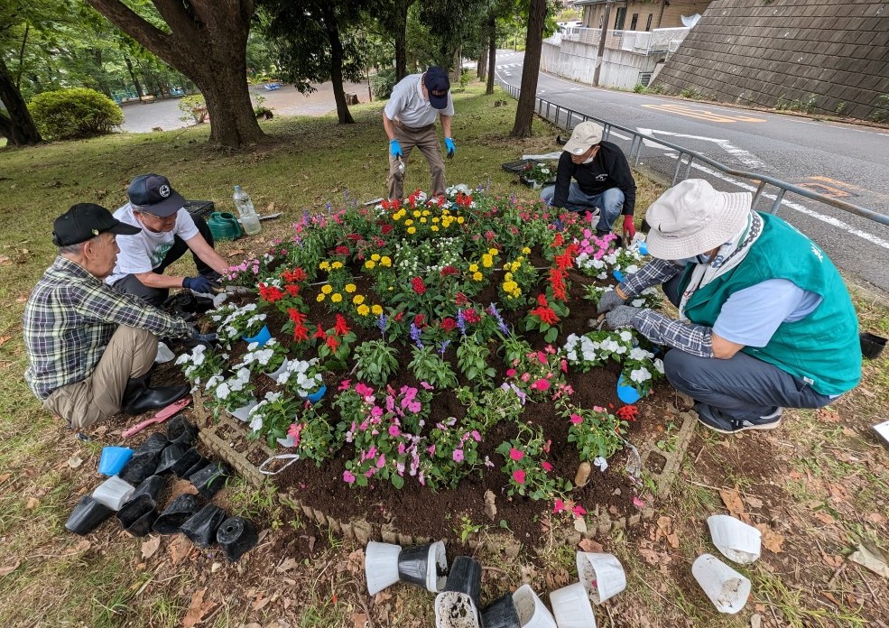 5月30日~6月1日にかけ、土橋園芸クラブが管理する全ての花壇に夏に盛りを迎える花への植え付けが終わりました!