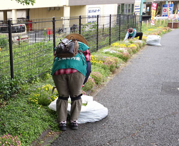 薄曇りの土曜日、本来なら園芸クラブの総会を予定していたもののコロナ騒動で中止、全ての会議の前に花壇の手入れを行う伝統は維持して、有志による草刈り清掃作業を実施しました。