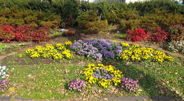 温暖な師走を迎え、各花壇ともそれなりの華やかさを誇示するように元気に育っています。春の華やかな花畑が楽しみです!