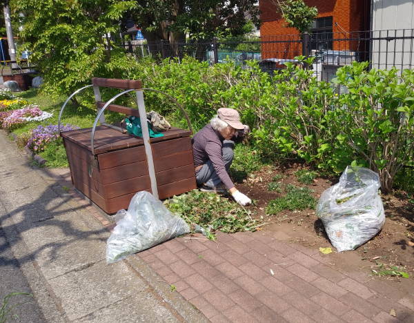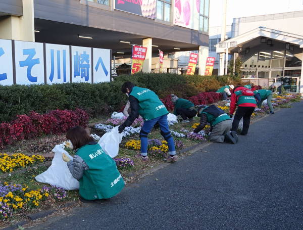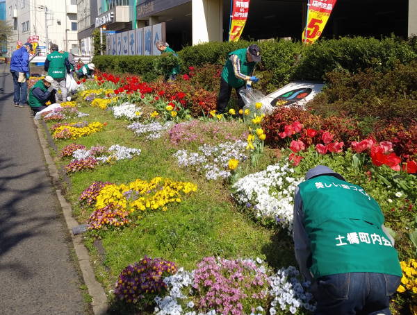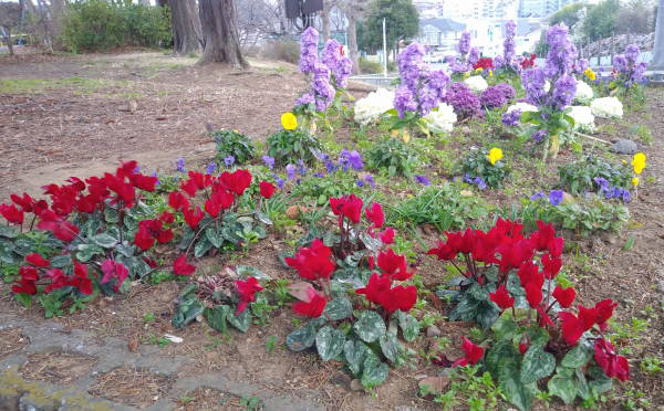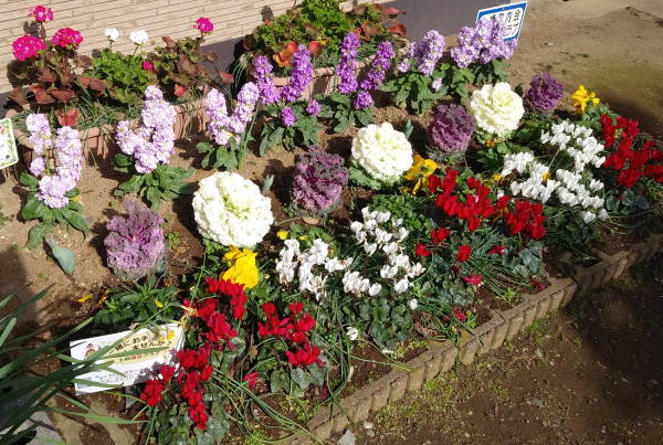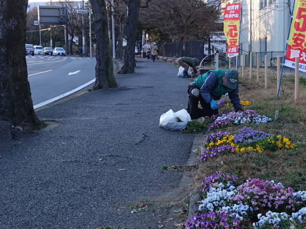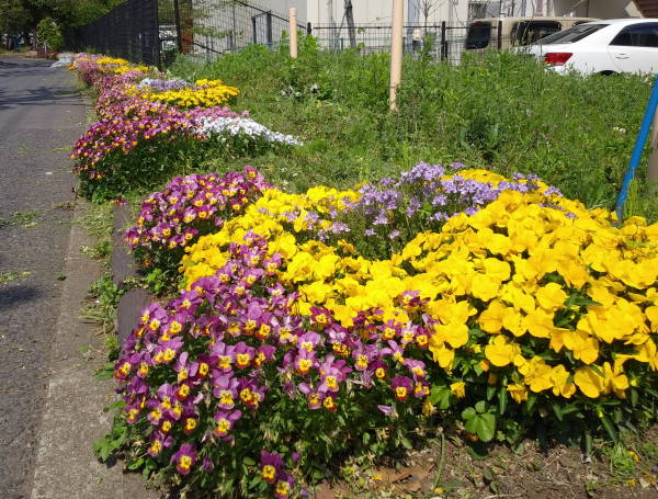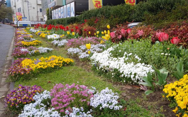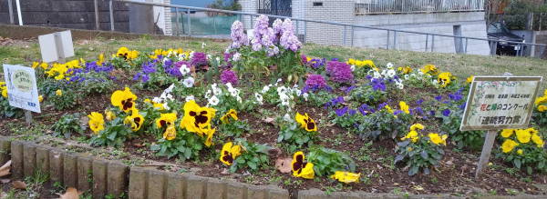 年末の12月28日、尻手黒川線道路の歩道清掃作業と土橋会館の大掃除に合わせ、新年へのお化粧として、東名花壇の草取りを行いました。今年は時々の雨と暖かい天候に恵まれ、各花壇とも健やかに花たちが成長しています!