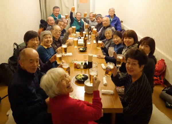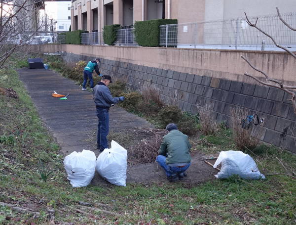 ポカポカと暖かい気候に恵まれた2月の初日、恒例の土橋園芸クラブの新年会を焼き鳥屋『鳥鈴』で! 宴会に先立ち、これも恒例の1時間の草取り、東名インター前花壇と矢上川花木園が新年の装いになりました!
