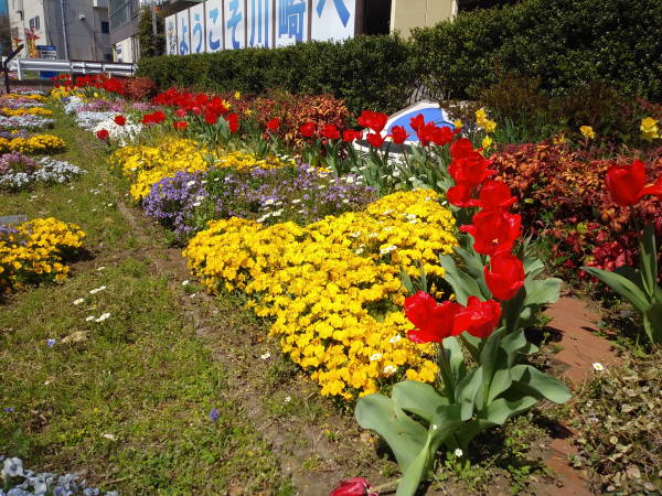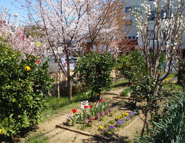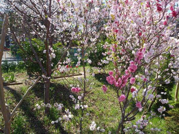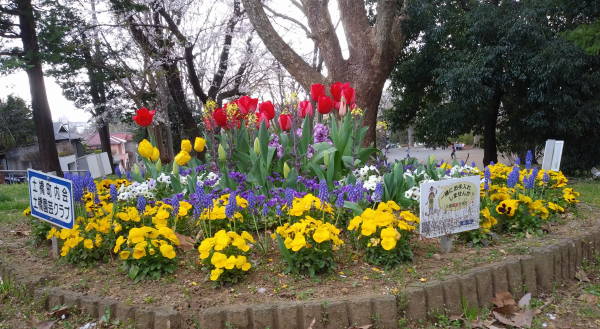 開花宣言が3月13日に出された東京の桜、史上最速とのことにて、東名花壇でもチューリップが咲き始め、矢上川花木園では花桃が赤とピンクの花を鮮やかに咲かせ始めています。