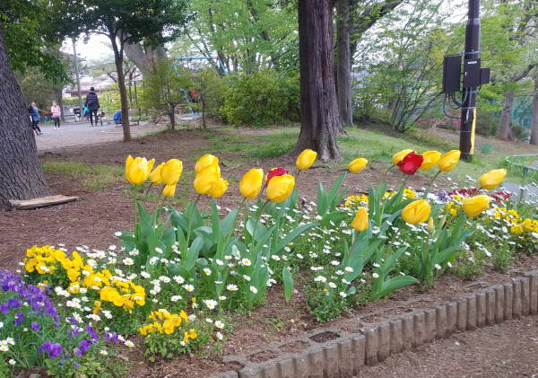 新年度を迎えた4月2日、東名インター前花壇と矢上川花木園の草取りを行い、折から満開のチューリップが鮮やかに輝きました!