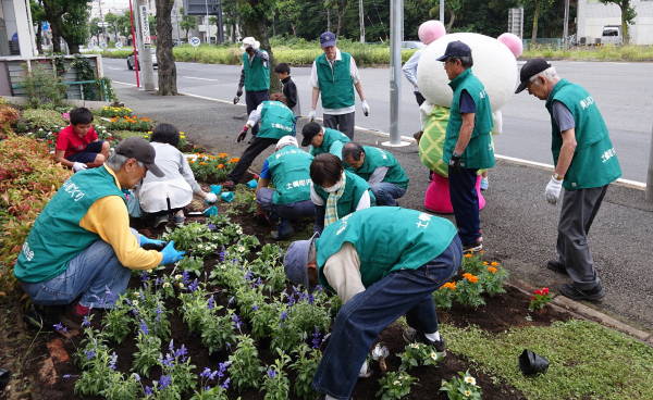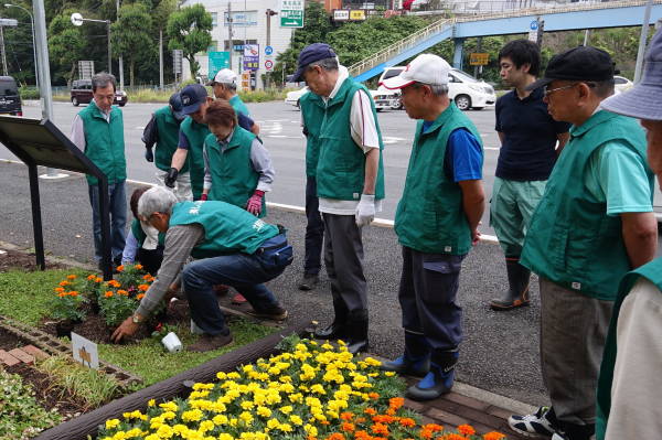 東名花壇6月の花植 東名インター前花壇の花植えを行いました。 土橋子ども会にも参加いただき、宮前兄妹のメロンとコスミンも参加、約50名で賑やかに、夏に向かって賑やかな花壇に生まれ変わりました! デザインの概要と花の配置を横山副会長より説明 リニューアルしたデザインを実地に説明 土橋園芸クラブ員により、花の配置完了 植え付け開始前に宮前区役所地域振興課 松元課長のご挨拶をいただく 横山副会長よりデザインと植え付け上の注意事項を 宮前兄妹も登場 終わってみんなで記念撮影 ツイート